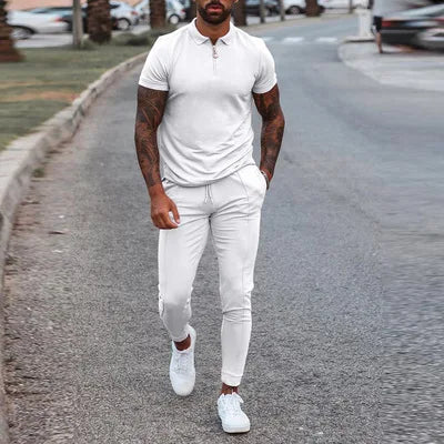 Men Black Short Sleeve Polo-Shirt With Zipper